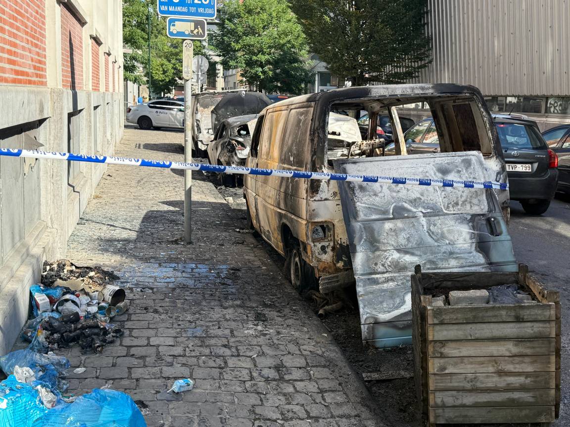 Brandweer blust drie brandende voertuigen aan Lemmensplein