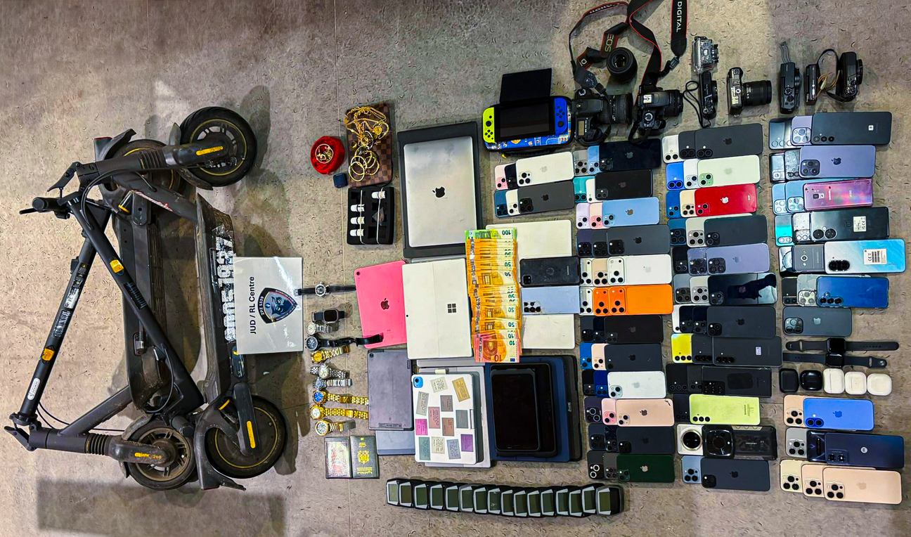 In het appartement werden 105 vermoedelijk gestolen smartphones ontdekt. Daarnaast werden onder meer 14 computers en tablets, 16 boordcomputers van elektrische fietsen en 7 fototoestellen gevonden, net als 1.880 euro cash geld.