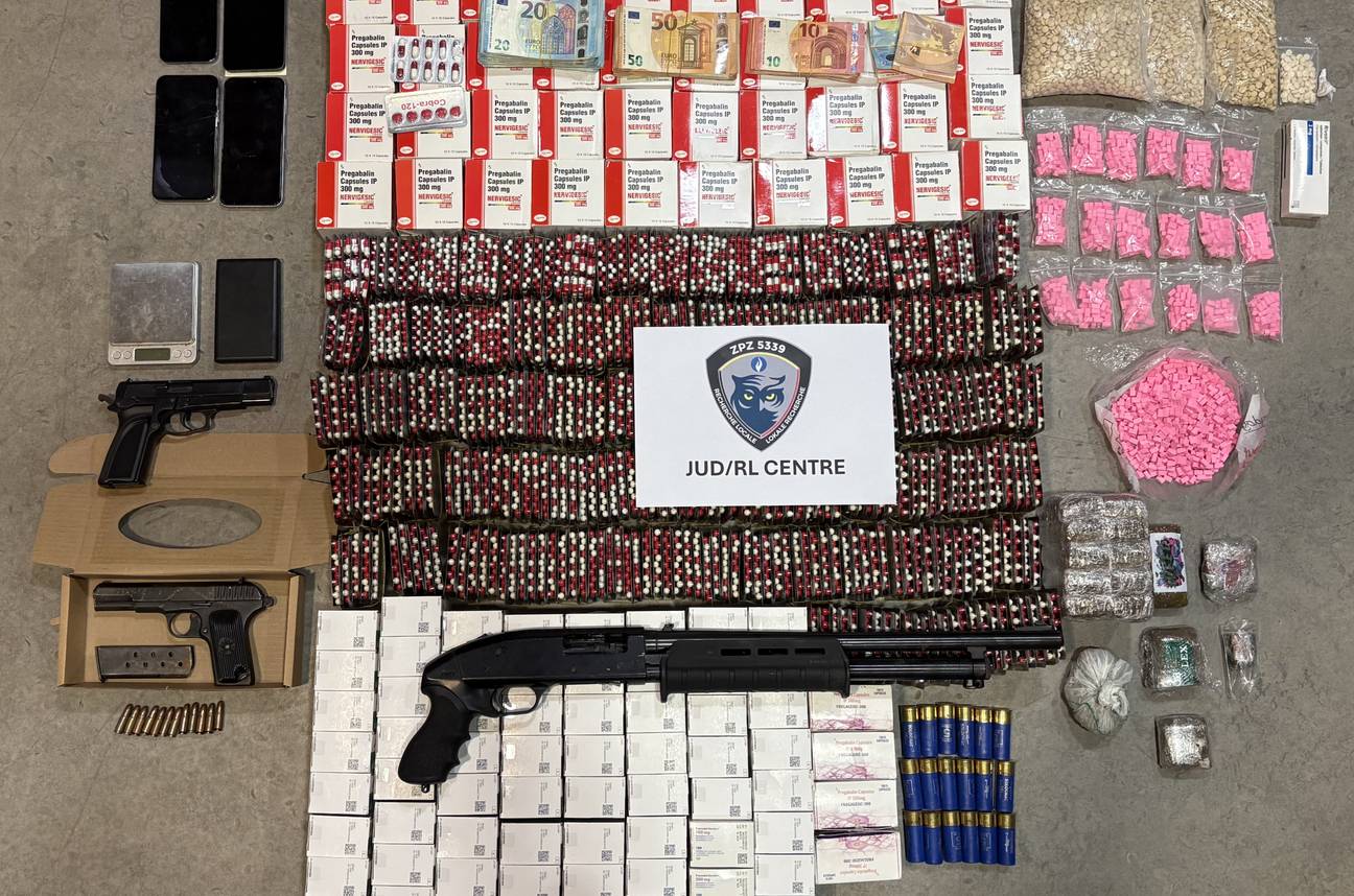 De politie spreekt van een enorme vangst. Zo werd er 9.380 euro cash geld in beslag genomen, net als iets meer dan 1,3 kilogram cannabis. Daarnaast werden ook 1.900 xtc-pillen aangetroffen, 20.109 tabletten Lyrica, 7.900 pillen van Tramadol, 7.511 pillen Captagon en 150 Rivotril-pillen.