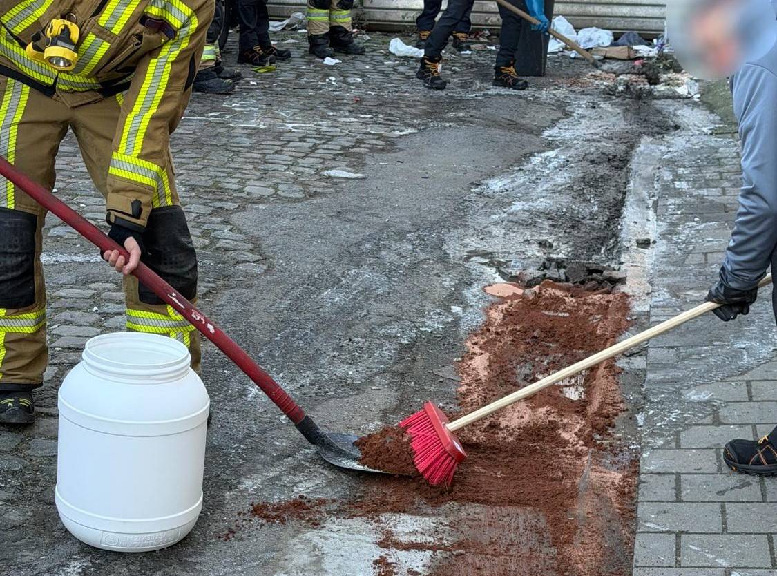 De eerste metingen van het team wezen op een pH-waarde (een indicatie van de zuurtegraad) van 11. De brandweer heeft de vloeistof geabsorbeerd. De pasta, die in twee vaten zat, zal later worden opgehaald door Leefmilieu Brussel.