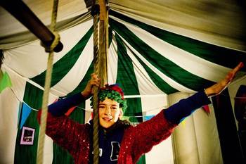 Laurie repeteert voor haar circusact, in het clubhuisje van Rune. "Ik speel een clown die van zichzelf denkt dat hij goed kan goochelen. Maar elke goocheltruc mislukt." En ze moet er al van tevoren om lachen.