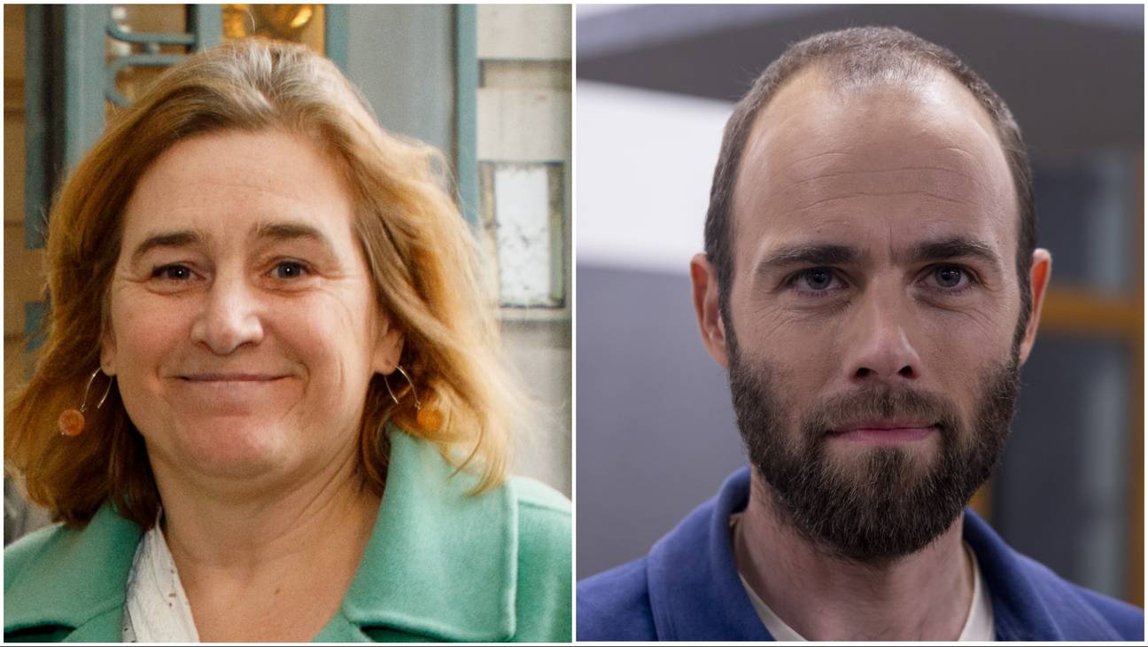 | Groen-kopstuk Elke Van den Brandt (l.) en aftredend Groen-voorzitter Bart Dhondt (r.)