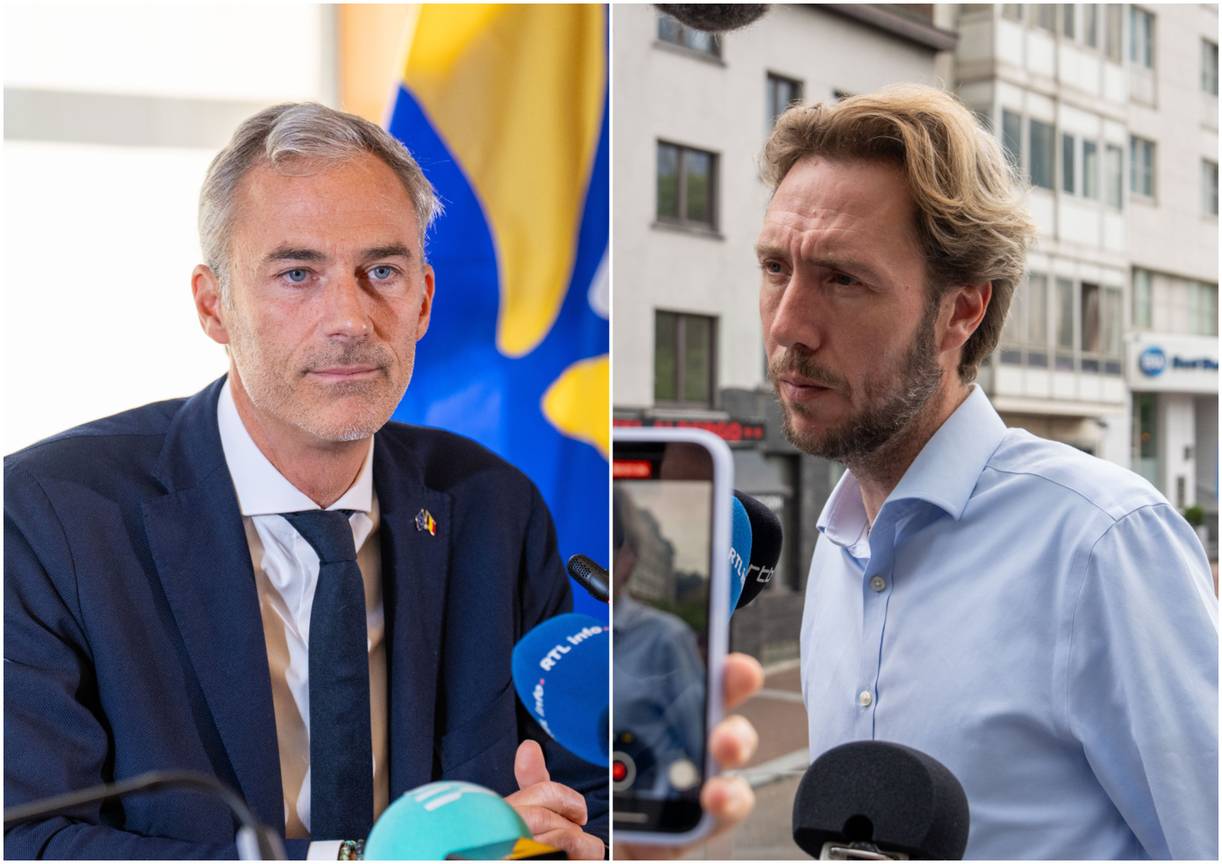 | Les Engagés-voorzitter Yvan Verougstraete en Open VLD-onderhandelaar Frédéric De Gucht