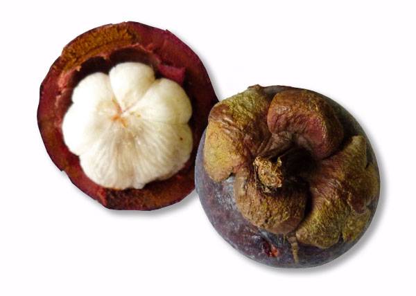 De mangoestan doet zich voor als een paarse, ronde, stevige vrucht. Ik kocht een netje van een halve kilo voor de prijs van 6,50 euro. Dat is wat asperges of zo kosten! Maar aan asperges zit heel wat eetbaars, aan mangoestanen niet. De vrucht groeit aan de boom en wordt bij het rijpen dieppaars, een beetje zoals een aubergine. Aan het steeltje blijven vier vlezige kelkbladeren zitten; de vruchthuid voelt lederachtig aan. Van hard wordt de vrucht wat zachter bij volledige rijping. Maar hoe weet men nu of een mangoestan niet overrijp is? Het is immers bekend dat mangoestans maar kort houdbaar zijn. Een gepensioneerde importeur wist het mij te vertellen. Na verloop van tijd wordt de vrucht weer harder. Koop dus geen harde mangoestanen. De vrucht moet wat meegeven onder de druk van onze handen, leerachtig, niet houtachtig. Hij mag er ook niet gevlekt of beschadigd uitzien, want de schil bevat bittere stoffen die tegen bederf beschermen. Als die al niet meer werken, dan moet het wel slecht gesteld zijn met het fruit in de winkel.