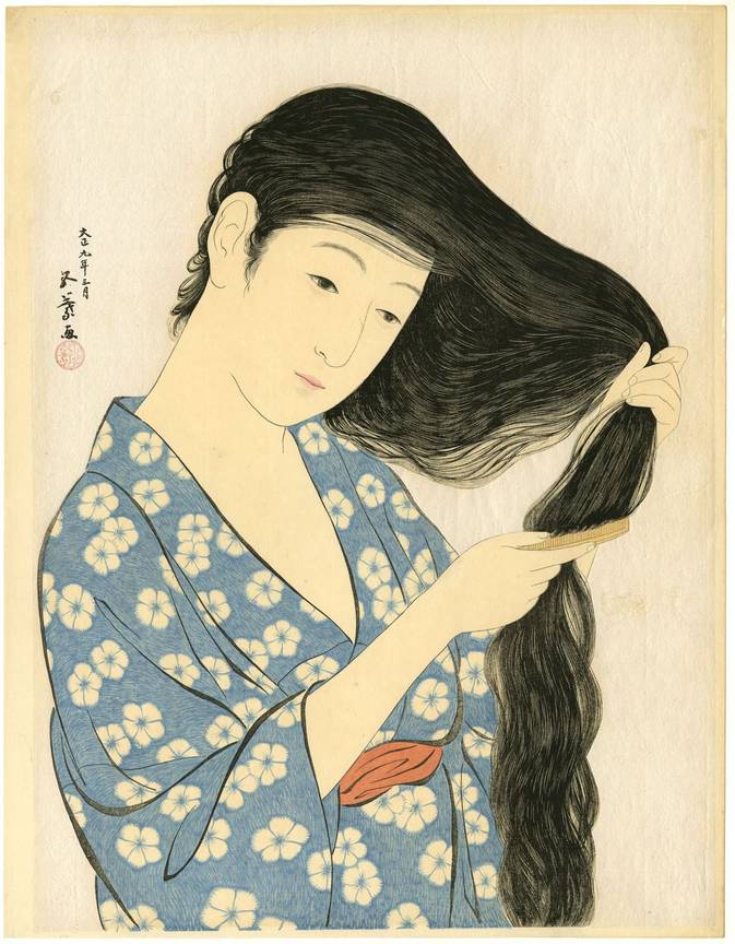| Vrouw die haar haar kamt, Hashiguchi Goyō (1881–1921)