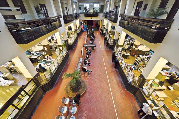 Jarenlang stond de voormalige drukkerij Le Peuple te verkommeren in het stadscentrum, op een boogscheut van het Belgisch Stripmuseum. Tot de Spaanse autonome regio Asturië besliste om het pand op te knappen en er een cultureel centrum met restaurant in onder te brengen. De Spaanse architecten hebben nauwgezet de oorspronkelijke structuur gerespecteerd. De binnenruimtes, een harmonieus spel van zwart en wit, zijn helder en eenvoudig. Aan de achterkant werden nieuwe kantoren opgetrokken die met een loopbrug met het oorspronkelijke gebouw verbonden zijn.