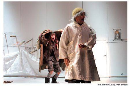 We zijn net de andere kant op gefietst en hebben ons verdiept in de wonderlijke, duistere tovenarij uit de renaissance. Als het boeiend is dan houden ze het best wel vol. Ik heb geen enkele klacht gehoord van kinderen die twee uur te lang vonden. We hebben het stuk wel zo ingekort dat het geen herhalingen heeft of ingewikkelde kronkels bevat, maar we hebben geen niveaus geschrapt. Het mooie van Shakespeare is dat hij tegelijk heel kolderiek en heel serieus schrijft. Dat hij én een liefdesverhaal én een koningsdrama vertelt. De storm is bovendien zijn enige koningsdrama waarin geen doden vallen. Uiteindelijk gaat het stuk over de vergeving van Prospero. Zijn wraakgevoelens slaan om naar vergevingsgezindheid en dat gebeurt op een heel mooie manier.
