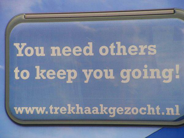 In januari 2010 staat singer-songwriter en theatermaker Tjerk Ridder met zijn autoloze caravan in Utrecht op het Domplein. Hij heeft zijn hond Dachs meegebracht en een bordje met daarop 'Trekhaak gezocht'.