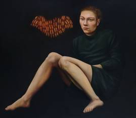 With economy of means and fascinating technique, the artist creates work with an enigmatic simplicity, centred on the human face, with neither decor nor accessories. In most of her portraits, there is an element out of place, an indecipherable dissonance, for instance, a blouse pulled up over a woman's chest or four pairs of unmatched legs emerging from a cleric's robe. Impermeable to interpretation, Sophie Kuijken's world has a magnetic quality that lingers in the viewer's mind long after they have stopped looking.