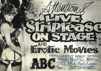 The ABC not only thanked this status to its screening of high-quality celluloid, but also to the combination with live striptease. Jimmy Pantera: “The striptease acts between the films, from ten in the morning until ten in the evening, made the ABC unique. In fact, there were no film screenings as such. You could come in and out whenever you wanted with a ticket that was valid all day. Every hour, the film would be interrupted by a striptease, often in the middle of the film.”