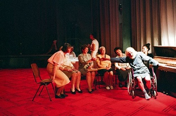 Chartier: Oof… [Thinks about it] No, I wouldn’t do that. I think it’s too harsh for that, really, despite the fact that all the actors, both amateurs and professionals, are clearly having a lot of fun onstage. But I’m trying to image, later, when I’m old – which I’m really scared of, by the way – and in a home myself and might watch this piece... No, not really, no.