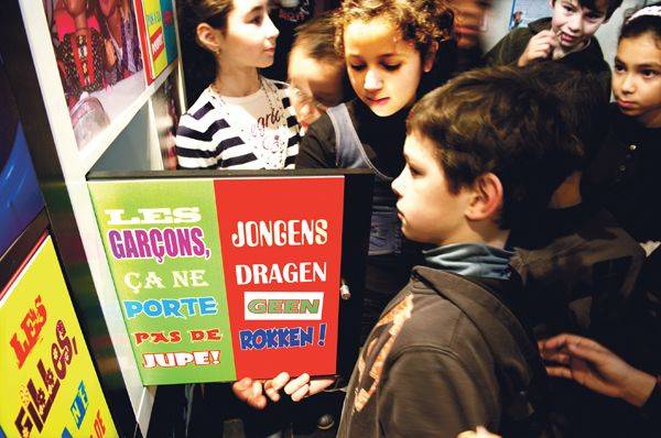 Je hebt het begrepen: deze expo zit vol met weetjes en activiteiten waardoor je meer - en misschien ook anders - gaat nadenken over jongens en meisjes. "Leuk én interessant," vertellen Anaïs en Reda (9) aan Zazie achteraf. "Zeker de grappige videofilm! Daarin zagen we dat de vrouwen vroeger, in de middeleeuwen, thuis altijd moesten werken voor de mannen, hun eten klaarmaken en hen wassen en zo," zegt Reda (9). En Anaïs wist ook niet dat het toen zo erg was; ze is "echt blij dat het intussen een beetje is veranderd. In onze klas moeten de jongens evenveel voor de orde zorgen als de meisjes, hoor!"