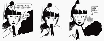 Non seulement par le choix du sujet mais aussi par l’approche graphique du récit. La famille où grandit Rosie, 13 ans, s’écroule : sa mère a filé à Dubaï avec un nouveau mec, son père est trop pris par son travail pour s’occuper d’elle. D’abord il y a l’ennui. Puis des expériences mêlant cigarettes et bière. Rosie prend vite des breuvages plus forts, commence à sécher les cours et se retrouve empêtrée dans une spirale descendante de mensonges obsessionnels, d’abus d’alcool, d’isolement social et dans un sombre mélange de problèmes psychologiques. Jusqu’à ce que le destin frappe à la porte… Avec ce roman graphique, Fraipont et Bailly livrent une histoire sombre et rude de passage à l’âge adulte. Bailly se limite à l’utilisation du noir et blanc, avec de grandes surfaces noires et des traits fins en hachures. Et cela dans un rythme strict de neuf cases par planche. Son style rappelle les gravures sur bois brutes de Frans Masereel, avec un soupçon de Bastien Vivès – un des wonder boys de la nouvelle génération française.