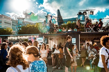 À moins que le réchauffement climatique en décide autrement, Bruxelles n’aura jamais une vraie plage à ses pieds. En attendant, Bruxelles les Bains déverse en été quelques tonnes de sable sur le quai des Péniches où surgissent bars à cocktails, activités sportives, stands où se restaurer et pataugeoires pour les enfants. Ces derniers sont aussi attendus sur les berges pour des ateliers créatifs à base de matériaux de récupération avec Kidsgazette et Patrimoines à Roulettes : de vieilles capsules métalliques pour faire des carillons, des bouchons de liège pour une grande pêche aux canards, des bouteilles en plastiques pour fabriquer des véhicules miniatures... Les plus grands pourront compter sur les soirées du Boat Club pour faire disparaître les derniers kilos emmagasinés au cours de l’hiver.