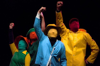 Natalia Dufraisse : La force de notre collectif, c’est de jouer sur plusieurs tableaux. On fait aussi bien des performances que des spectacle pour adultes et du jeune public. À la base de ce projet, il y avait cette idée d’opéra pour enfants avec l’envie d’en rajouter plutôt que d’en retirer. On ne verra pas un comédien qui arrive seul sur scène avec sa petite valise d’accessoires. La force du spectacle est dans la prise de risque. Ce n’est pas courant de se retrouver à six, dont deux régisseurs, sur scène.