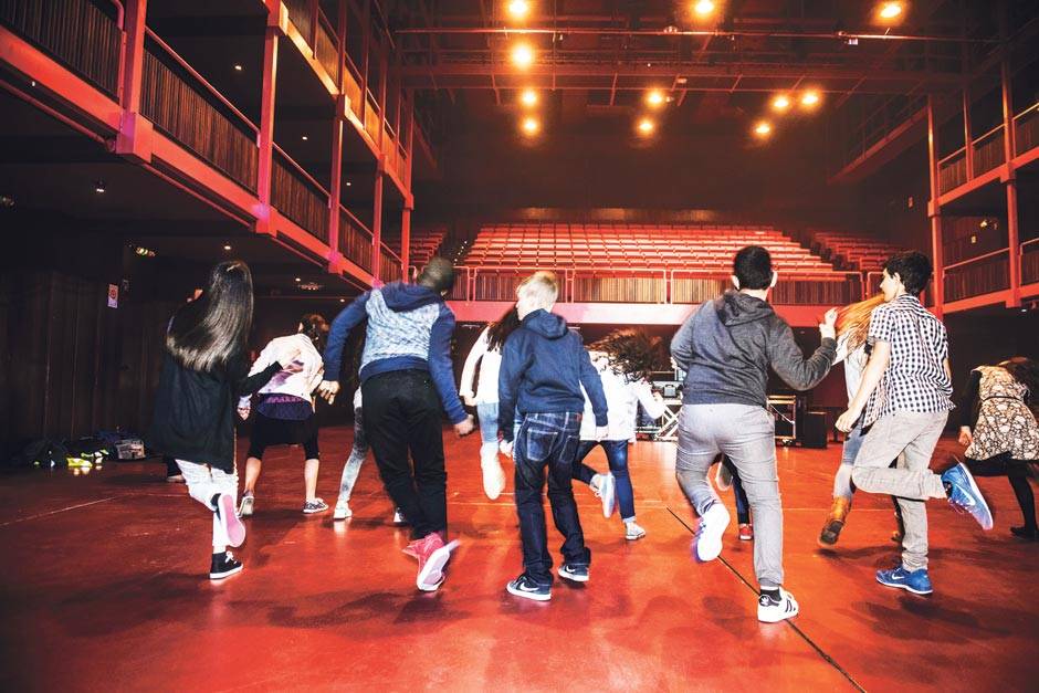 KEVIN: Er werken hier vijfenveertig mensen. Ikzelf ben verantwoordelijk voor de perscontacten. We hebben ook mensen voor licht en geluid, voor ticketverkoop en security. Er zijn twee restaurants: één voor bezoekers en één voor de crew en artiesten.