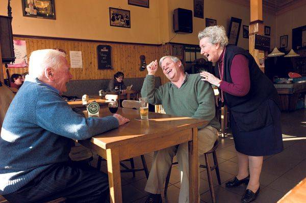 Aandoenlijk is de klok boven op de oude Philipstelevisie, waarop het voor altijd zeven over zes is: een uur dat past bij de griezelige heruitzending van Ein Fall für zwei, die op het moment dat ik hier zat passeerde zonder dat zelfs de hond ernaar omkeek. De klank stond trouwens af, wat de intrieste intro van Duran Durans 'Save a Prayer' op Radio Nostalgie des te beter tot zijn recht deed komen. 'Abacadabra' van Steve Miller Band moest toen nog komen, en dat dat een vrolijker liedje zou zijn, is ook maar een fabeltje. Zou het echt 'Een mooie dag voor mosselen' zijn zoals het grote spandoek boven de doorgang naar het restaurantgedeelte beweert? Ik kijk geïnteresseerd naar de erelijst van het 'Concours social' van de plaatselijke biljartclub. Alle winnaars van het seizoen 1966-67 tot 2000-2001 staan erop. Voor de rest van de eenentwintigste eeuw was er geen plaats meer. Snoeck Gerard won zowel in 1999 als in 1969, een jaar waarin Laurel & Hardy nog niet versteend waren tot het postuurtje dat nu op de toog staat.