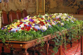 Negentien topfloristen zullen dertien historische zalen in het stadhuis, dat doorgaans niet voor publiek geopend is, floraal inkleden naar de kleurrijke en fruitige stijl ‘bloemen en vruchten’.