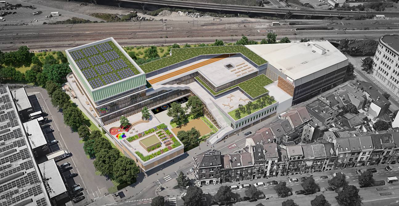 Enkele loodsen op een oud industrieterrein aan het spoor in Vorst ruimen straks plaats voor een schoolgebouw van 22.000 vierkante meter. Extra onderwijscapaciteit was in de dichtbevolkte buurt broodnodig. Behalve 1.250 leerlingen in de kleuter-, basis- en middelbare school zullen er ook 35 peuters en kleuters in een crèche terechtkunnen. Aan het kanaal enkele honderden meters verderop wordt tegen 2024 een Nederlandstalige school gebouwd.