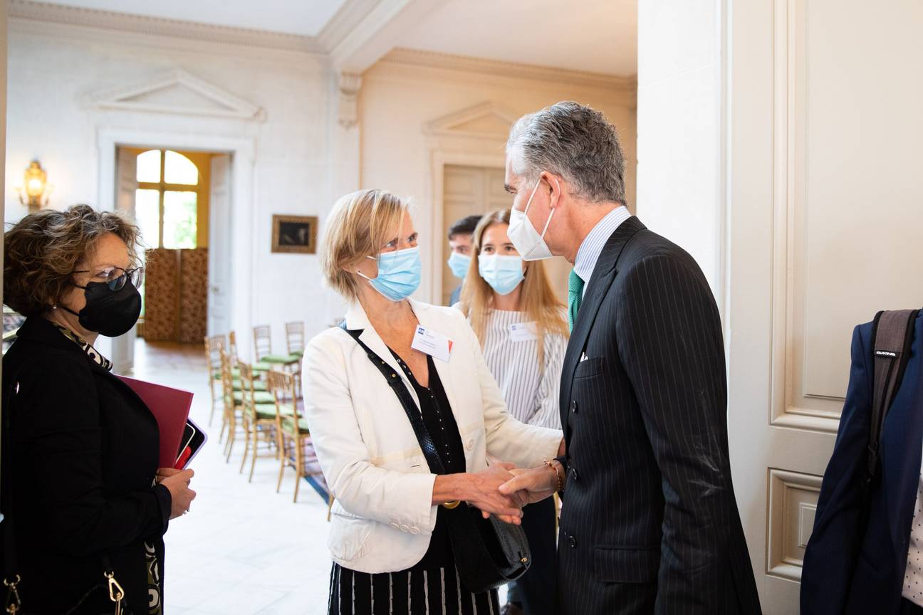 | Caroline Pauwels schudt de hand van de Italiaanse ambassadeur.