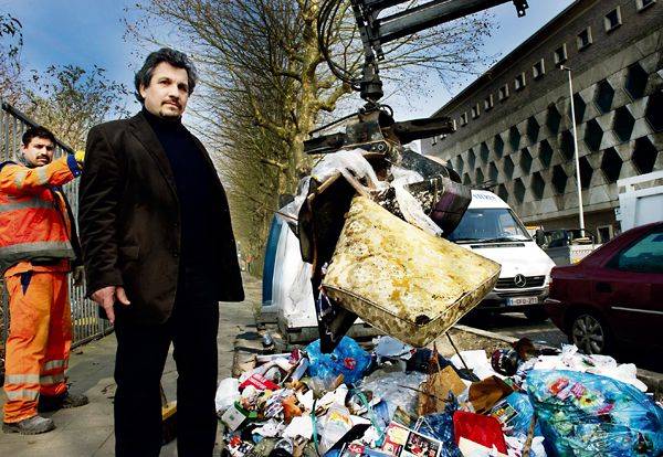 "Het rondslingerend vuil op straat komt van overal," zegt hij. "Schoolkinderen trekken reclamefolders uit brievenbussen, autobestuurders maken hun wagen leeg op het trottoir, moslims hangen plastic zakjes met oud brood aan de hekken. En de hele dag rond valt er van alles van de balkonnetjes, variërend van snoeppapiertjes tot hele vuilniszakken. Vroeger werden de meeste huizen hier door een of twee gezinnen bewoond, nu leeft er op elke verdieping een familie."