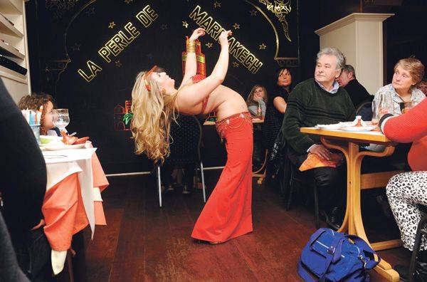 "Optreden doe ik vooral in restaurants en op privé-feesten. Zo heb ik zelfs al eens mijn kunst gebracht ter gelegenheid van de besnijdenis van een jongetje van twaalf. Ik heb ook een tijd veel in cabarets gedanst, maar daar ben ik bijna volledig mee gestopt. Het is er wel prettig werken - omdat je danst voor een kennerspubliek, begeleid door een orkest en niet door cd's zoals in restaurants, maar het is nu eenmaal het nachtleven en dat heeft zijn gevaren. Af en toe dans ik er nog eens als men mij er expliciet om vraag en het me uitkomt. Soms heb ik ook weinig keuze, want de crisis laat zich overal voelen, zeker in de horeca. En de concurrentie is er wel degelijk, ik ben zeker niet de enige buikdanseres in Brussel".