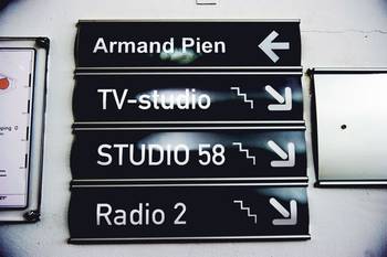 B ij mooi weer loopt het Ossegempark in een wip vol met voetballende jongeren en picknickende families die de buitenmuren van het Amerikaans Theater gebruiken als 'ruggensteuntje'. Maar vandaag is het grijs en ligt het park er stil en verlaten bij. Ook binnen in het omroepgebouw is het stil. Veel volk werkt er ook niet in het grote pand: zo'n 25 man, verdeeld over Radio 2 Vlaams-Brabant, het documentatiearchief en de decoropslag. Als er tv-opnames in de studio zijn, komen er natuurlijk wel mensen bij van de Reyerslaan.