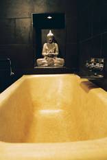 "Volgende etappe, terwijl ik nog niet goed wist wat ik zou doen: een opleiding in het imiteren met verf van hout en marmer aan het Institut Supérieur Van Der Kelen-Logelain, het oudste instituut in decoratieve schilderkunst van het land. Ongeveer in diezelfde periode heb ik, louter bij toeval, een foto gezien van een badkamer waarvan de badkuip met tadelakt was bekleed. Het was een coup de foudre, en al gauw zat ik in mijn badkamer te experimenteren. Het resultaat was niet fameus. Maar ik was gebeten, en uiteindelijk heb ik, dankzij de Vorstse afdeling van de Mission Locale pour l'Emploi et la Formation, een opleiding kunnen volgen in Marokko, de bakermat van de echte tadelakt."