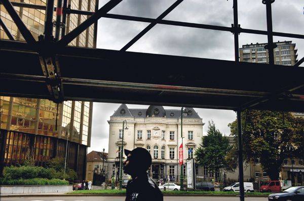 Het gemeentehuis ligt aan de Sterrenkundelaan, bij metrostation Madou. Dus pal naast de kleine ring, waar elke automobilist voorbijraast, in de totale onmogelijkheid eventuele architecturale kwaliteiten op te merken.