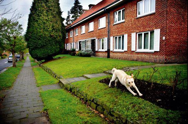 Aan een roseetje hebben ze niet gedacht als ik aanbel in de Anjoudreef 8. Niemand op de afspraak bij de coöperatieve Messidor. Dan maar eerst naar Nicole Warnotte - weer een klim -, die zeven jaar terug het wijkcomité heeft opgericht. Om de oudere bewoners vertrouwd te maken met de jonge, vaak grote gezinnen die hier terechtkomen, en omgekeerd. "We organiseren wijkfeesten, met een thema. 'Circus' bijvoorbeeld, met vuurspuwers en jongleurs en de dankbare inbreng van getalenteerde bewoners," geeft de actievoerster snel mee, voor we de wijk doorwandelen. Om de hoek, verscholen achter groen, ligt de feest- en picknickweide, met 'kot' om te vergaderen en compostpark. En verderop, naast het gratis tennisveld: een cool buurtlokaal, mooi uit de architectuurboekjes van Expo'58 ontsnapt.