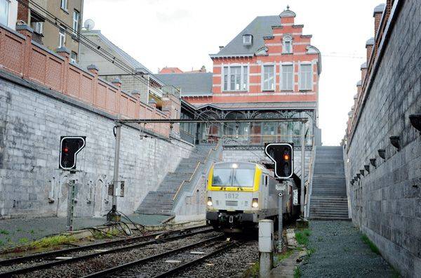 Onder de gebouwen van dit stukje spoorwegpatrimonium zien we de treinen tussen Schaarbeek en Schuman uit de tunnel duiken, even toeteren, om dan snel weer te verdwijnen.