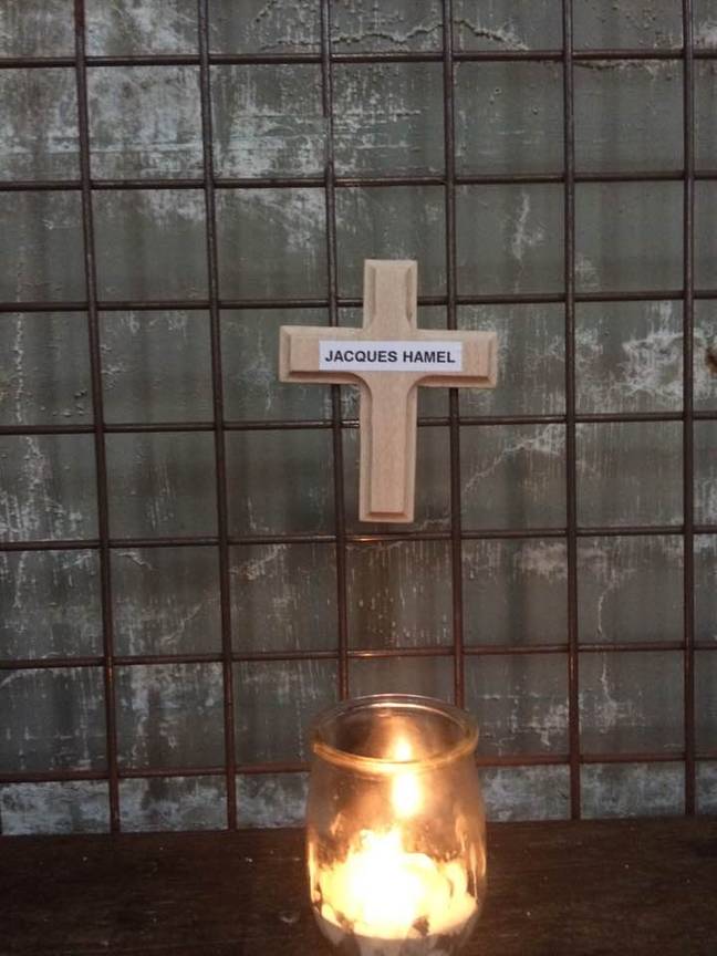 Pastoor Dirk Vannetelbosch heeft aan de wand voor overleden parochianen van de Sint-Pieterkerk in Jette een kruisje gehangen voor de overleden Franse priester Jacques Hamel. Hamel werd dinsdag de keel overgesneden door aanhangers van terreurgroep IS bij een aanslag in zijn kerk in Saint-Etienne-du-Rouvray, nabij Orléans.