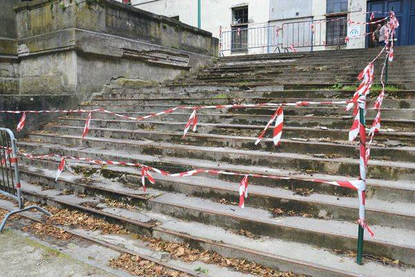 T erwijl het verroeste ijzer van de trap aan de dienstingang van het Koninklijk Museum van het Leger en de Krijgsgeschiedenis in het Jubelpark meer en meer loskomt, brokkelen de stenen treden af. Twee draden bakenen de ruimte af, maar of dat voldoende is om de kinderen van de nabijgelegen speeltuin tegen te houden, is zeer de vraag.
