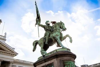 Om 13.00 uur was er een bijeenkomst op het Koningsplein, net voor het bronzen standbeeld van Godfried Van Bouillon. Hij was immers de laatste van vele historische figuren die zaterdag door de actievoerders beschermd werden tegen fijn stof.