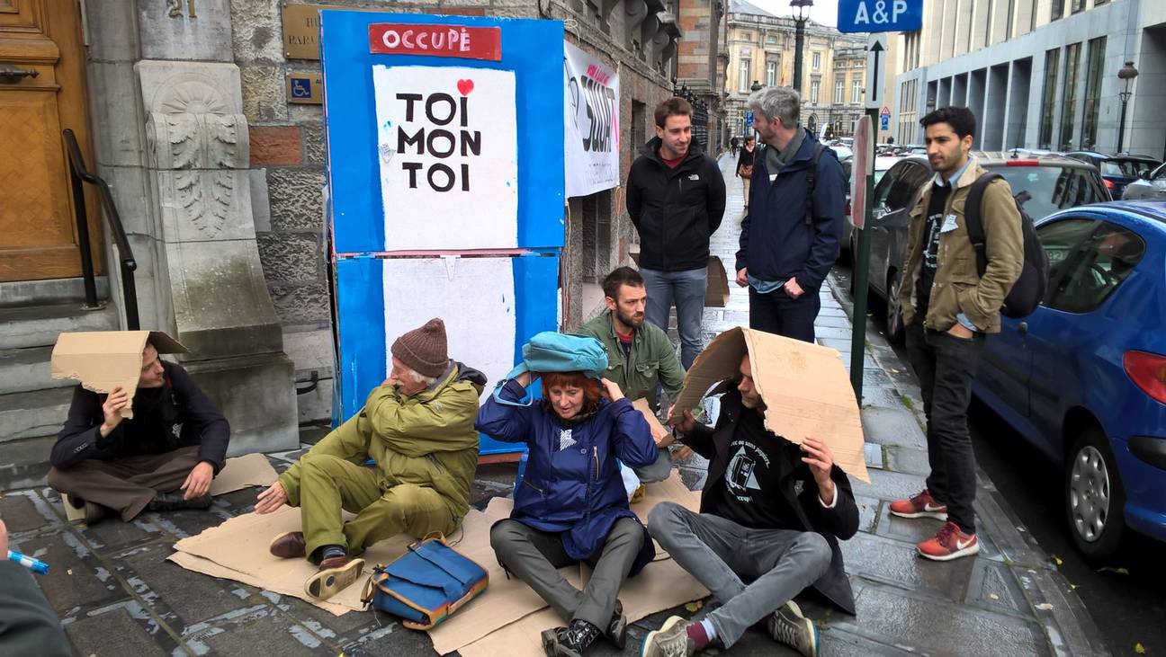 Manifestanten bezetten donderdagmiddag de ingang van het Huis van Parlementsleden, om te protesteren tegen de nieuwe anti-kraakwet die dan in de Kamer gestemd wordt. Volgens de Brusselse vzw Bij Ons – Chez Nous wordt het voorval in Gent misbruikt om ook het kraken van leegstaande woningen strafbaar te maken.