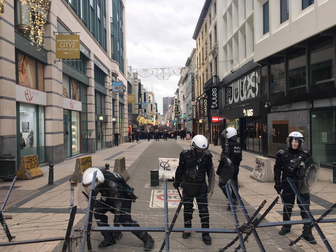 De gele hesjes waren sneller dan de politie, die vreesde dat de manifestanten door de Nieuwstraat zouden trekken. Daarom sloot die de winkelstraat uit voorzorg af, ter hoogte van City 2. "We willen vermijden dat ze in de Nieuwstraat amok beginnen maken met mensen die aan het winkelen zijn", zei een agent aan BRUZZ.