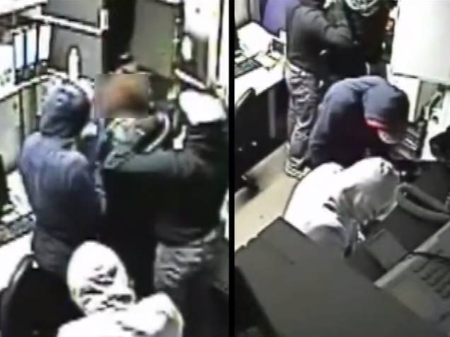 De eerste dader was gewapend met een zilverkleurig pistool. Hij is ongeveer 1m65 groot en slank gebouwd. Hij is vermoedelijk tussen 20 en 30 jaar oud. Hij heeft een fijn gezicht en heeft een baard en een snor. Hij droeg een donkere pull met een wit rond logo in het midden op de borst, een grijze jeansbroek, een bivakmuts en een witte pet.