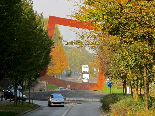 Indrukwekkend is het met zijn hoogte van 26 meter zeker: het werkt voor de naderende automobilist als een reusachtige schilderijlijst die het landschap kadreert. Maar het is jammer dat het een tweedimensionaal beeld is, dat geen gebruik maakte van het feit dat je er omheen rijdt en het dus van alle kanten ziet. Van opzij is het gewoon een rechte streep.
