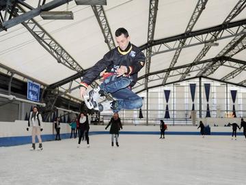 Bij (erg) koud weer kan het dak van de schaatspiste eraf, als enige in België, en kunnen de schaatsers in open lucht hun baantjes afmalen.