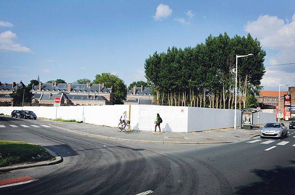 Het hoge lattenwerk moet verhinderen dat de site betreden wordt of dat er sluikvuil wordt gedumpt. De grond werd in 2012 door de Gomb verworven en krijgt woonbouw als bestemming.