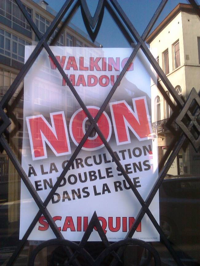 Rond het project Walking Madou lijkt het wel algemene mobilisatie geblazen. Voor- en tegenstanders van het project bundelen elk van hun kant de krachten om hun visie erdoor te krijgen. De tegenstanders zijn gestart met een affichecampagne met als boodschap: "Non à la circulation en double sens à la rue Scailquin".