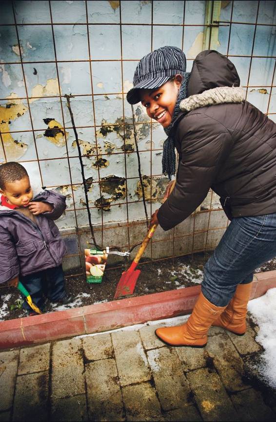 Een tiental cursisten van Brusselleer, laaggeschoolde anderstaligen op Nederlandse les, hebben een geveltuin op de binnenplaats van dienstencentrum Randstad aangelegd. Ze plantten er onder meer een druivelaar, klimroos, winterjasmijn, rode bessen, frambozen en kruiden als tijm en salie. De cursisten bouwden ook een klein huisje voor bijen. "Zo wordt de kale koer , waar ook de Nederlandstalige bibliotheek van Molenbeek op uitkijkt, opgefleurd," zegt Sven Hauben van Randstad. "Voor de cursisten, maar ook voor de vele oudere mensen die dagelijks in het dienstencentrum komen eten, zal het hier vanaf volgende lente stukken gezelliger worden."