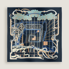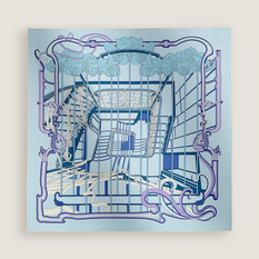 Dit seizoen prijkt er tussen de carrés een exemplaar met een Brussels kantje. De ontwerper Pierre Marie baseerde zich op de iconische hal van het Hortamuseum in Sint-Gillis, na een bezoek aan het museum. De sjaal toont de hal van bovenaf met veel aandacht voor de typische Art Nouveau-elementen: de bloemmotieven van de mozaïeken, rondingen, glas-in-loodramen en de arabesken van de trap.
