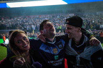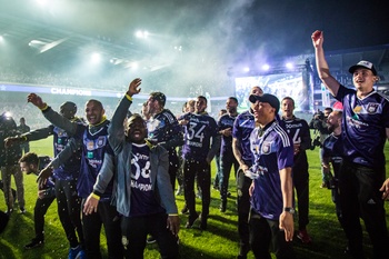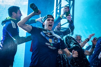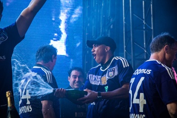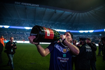 De ontlading was groot toen de scheidsrechter de match tussen RSC Anderlecht en Charleroi beëindigde. Paars-wit had na de zege op Charleroi zijn 34e landstitel beet. Op een litertje champagne meer of minder werd duidelijk niet gekeken.