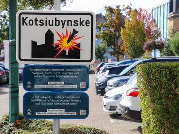 Borden in Sint-Pieters-Woluwe vragen aandacht voor burgerdoden bij bombardementen