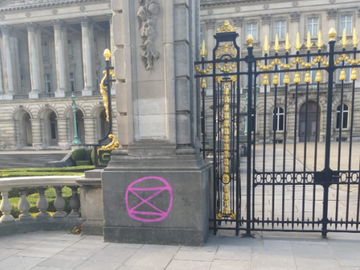 Extinction Rebellion laat tags achter op Koninklijk Paleis