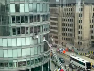 Gezien: brandweer bevrijdt ramenplaatsers die vastzaten op 35 meter hoogte