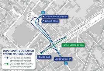 De belangrijkste aanpassing is het Louizaplein zelf. Dat wordt halverwege afgesloten zodat auto’s niet langer bovengronds van het Stefaniaplein richting Zuid kunnen rijden. Wie dat wil doen, zal naar het Poelaertplein moeten rijden en daar rechtsomkeer maken, om dan aan het Louizaplein af te slaan richting zuid. Wie vanuit Troon naar Zuid moet, kan nog altijd de Louizatunnel nemen.